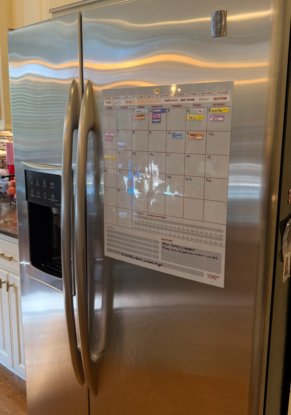 Material: Thicker silicone-backed clings and calendars (Lunar Gray/ Midnight Sky) or thin vinyl calendar (Sandstone)